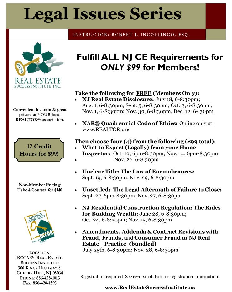 New Continuing Education Course for Real Estate Licensees: “NJ Residential Construction Regulation – The Rules for Building Wealth”
